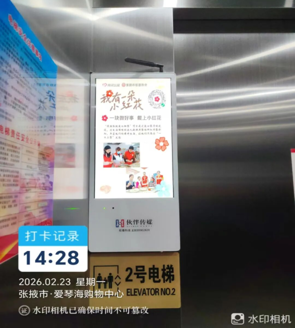 愛情海購物中心(張掖市最大購物商超)9個電梯屏幕在2月1日—28日期間持續(xù)點(diǎn)亮公益之光,以高頻次、廣覆蓋的傳播形式,讓公益理念隨人流傳遞,悄悄走進(jìn)張掖的千家萬戶。這抹小紅花,也成為張掖新春里獨(dú)有的暖心風(fēng)景,讓善意雙向奔赴。