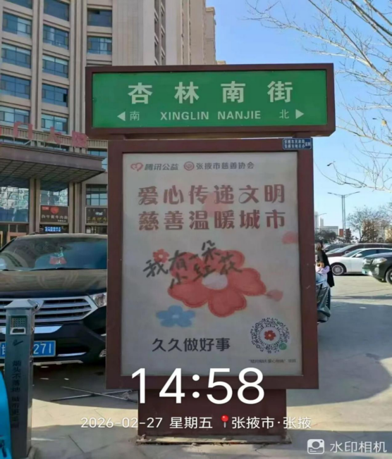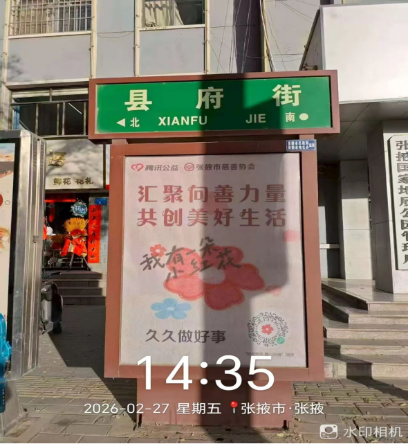 路名牌指引方向,小紅花傳遞溫暖,自2025年11月-2026年2月,張掖市甘州區(qū)城市主次干道20個小紅花路名牌,呈現(xiàn)在市民的生活中。當(dāng)市民步履匆匆穿梭街頭,當(dāng)游客駐足辨別方向,這抹藏在路名牌上的紅色善意,便會悄然映入眼簾,將“向善而行”的理念悄悄傳遞。讓新春的張掖,既有煙火溫情,更有公益力量。